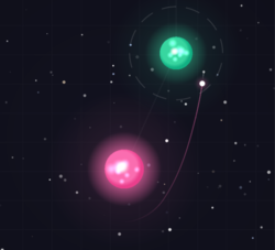 when your direction aims at the next one. The game picks a boost; gravity bends the path and captures you on the other side. Release within one rotation for bonus points.